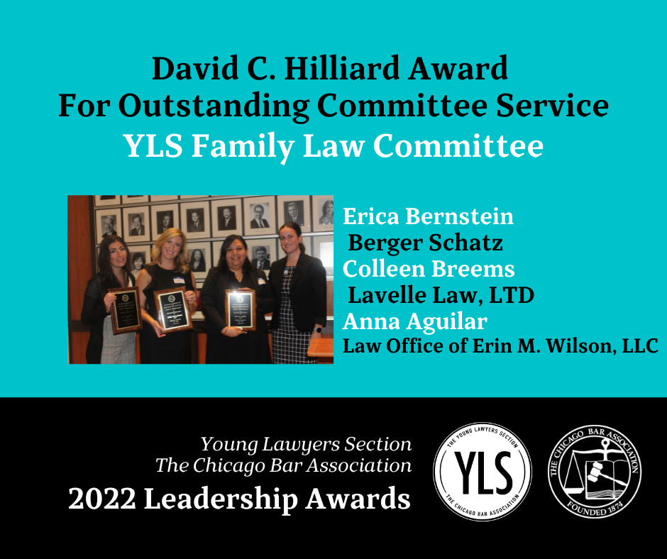 The Hilliard Award recognizes outstanding committee service and is presented to the chair(s) of a YLS Committee for exceptional performance in that role throughout the bar year. The award is presented at the YLS Annual Meeting.